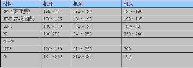 3、溫度:溫度控制是吹塑膜工藝中的關(guān)鍵,是影響質(zhì)量的重要參數(shù)。這種溫度控制方法的優(yōu)點(diǎn)是物料所經(jīng)受的高溫時(shí)間短不易分解,可減少拆卸機(jī)頭的次數(shù),提高機(jī)器生產(chǎn)的能力(見表1)。