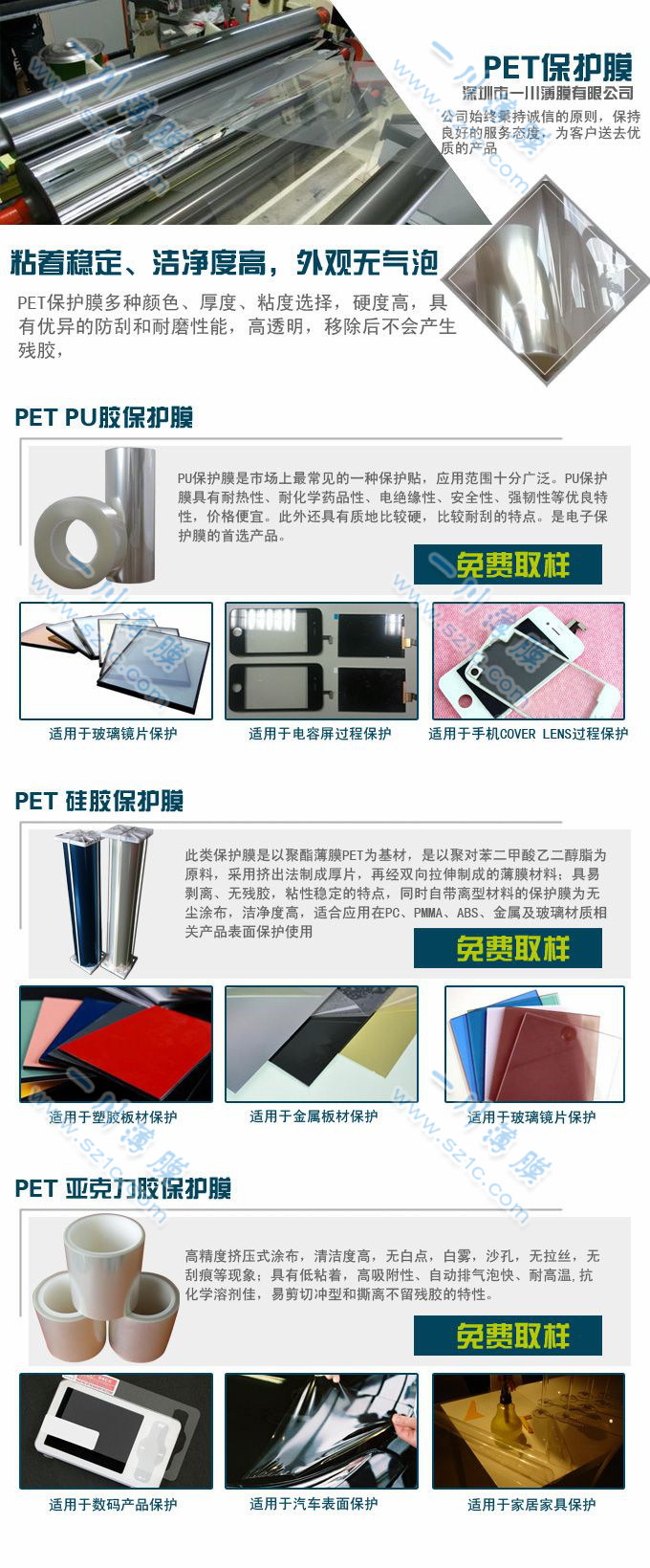深圳保護膜廠家——深圳一川薄膜,專業(yè)生產(chǎn)各類PET保護膜、PE保護膜、PVC保護膜,廣泛用于屏幕保護膜、光電保護膜等工業(yè)制造產(chǎn)品的表面保護。